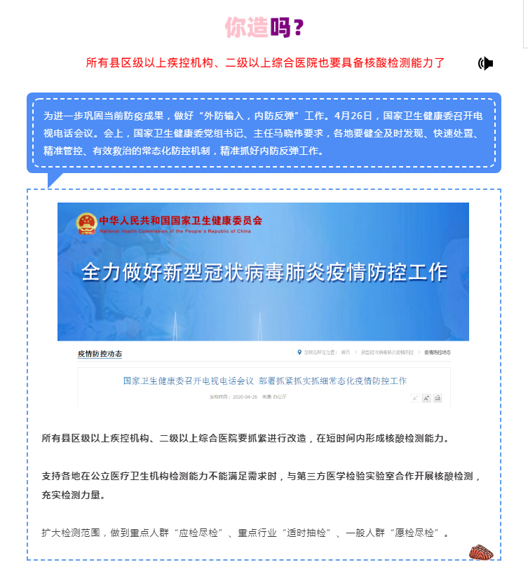 重要通知:縣區級以上疾控機構、二級以上綜合醫院均需具備核酸檢測能力!