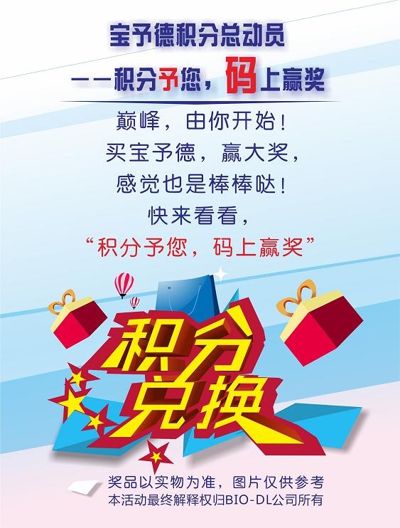凡于2016年關(guān)注寶予德官方微信號(BIO-DL_Corporation)注冊成為積分會(huì )員,通過(guò)參與寶予德不定期的活動(dòng)均可獲得寶予德海豚積分,海豚積分可以在微信積分兌換區兌換相應精美禮品。