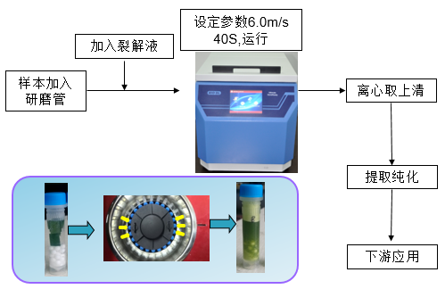 樣本加入研磨管——加入裂解——設定轉速和溫度和時(shí)間等參數——運行——離心取上清——游下游實(shí)驗及應用,只需幾分鐘即可完成24個(gè)樣本的前處理。徹底將實(shí)驗人員從繁雜危險的液氮研磨中解放出來(lái),同時(shí),Easy Extract生物樣品研磨儀無(wú)需液氮或干冰,通過(guò)自帶的制冷系統,使在研磨過(guò)程中樣品保持低溫狀態(tài),更大的避免了生物大分子活性物質(zhì)的降解。