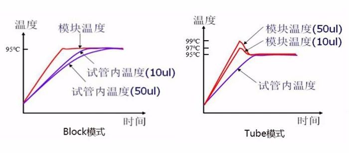 另外,很多PCR儀在加熱模式上有Tube、Block兩種方式可選。這是因為儀器的溫度傳感器在模塊下部,實(shí)際上無(wú)法測得樣品管內的溫度。一般情況(Block)下,在輸入設定溫度及運行時(shí)間時(shí),指的是模塊在到達指定溫度下持續相應的時(shí)間,樣品管的溫度不能迅速達到指定的溫度;而Tube模式是先將模塊溫度高于設定溫度,等樣品管溫度到達指定溫度,再將模塊溫度降到指定溫度,這樣能快速使管內溫度達到設定值。不同反應體積和要求可使用不同的模式:普通PCR或體積較大使用Tube模式,當長(cháng)時(shí)間保溫且對溫度過(guò)沖要求較高或是體積較小時(shí),可以使用Block模式。